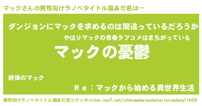 | 女子向けラノベタイトル風あだ名 | 『(仮)マックのやんごとなき事情』 |
