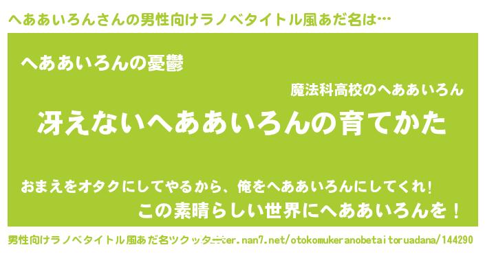 | 胡散臭い通販商品みたいなあだ名 | 『モテモテ間違いなし霊験あらたかなお札…その名も「へああいろん」』 |