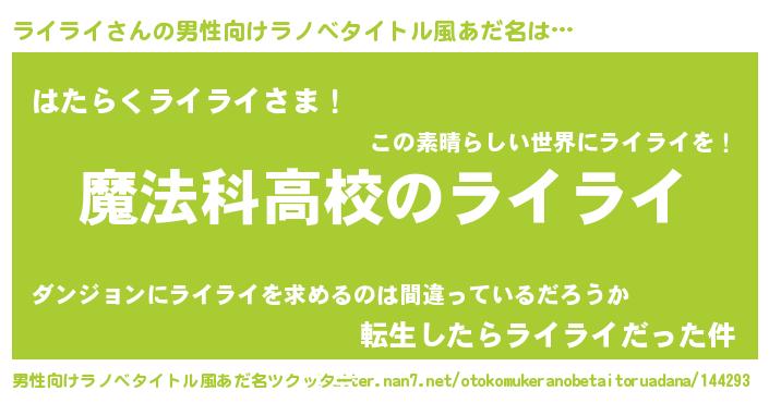 | 女子向けラノベタイトル風あだ名 | 『ライライなんてお断りですっ。』 |
