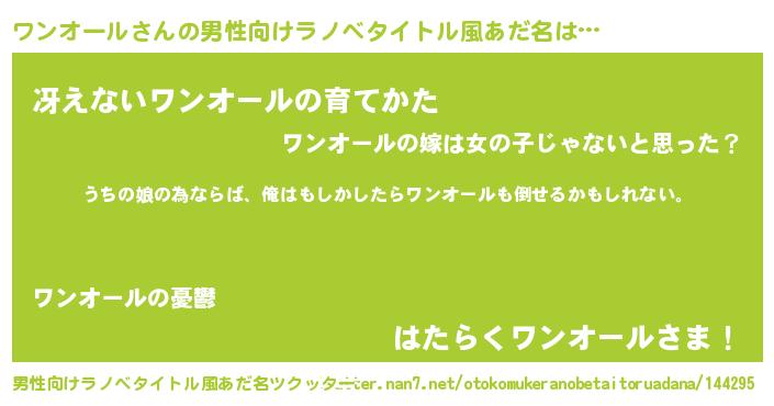 | ファンタジー風あだ名 | 『エターナルワンオールー』『ワンフェル』 |