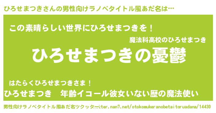 | 胡散臭い通販商品みたいなあだ名 | 『モテモテ間違いなしブレスレット…その名も「ひろせまつき」』 |