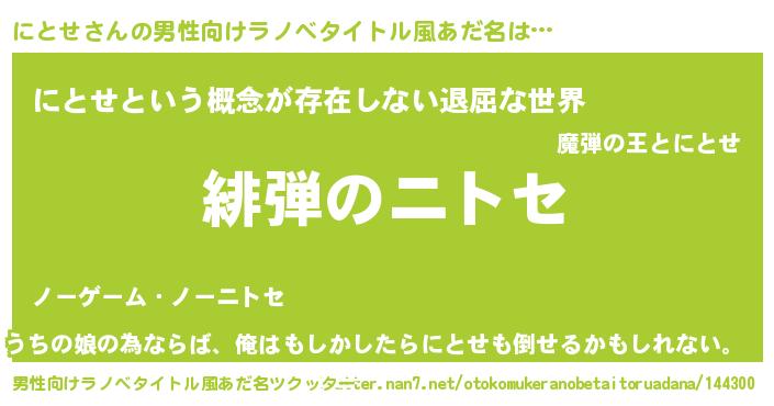 | ヒーロー風カッコイイあだ名 | 『ネオニトセ』『ウルトラにとせマン』 |