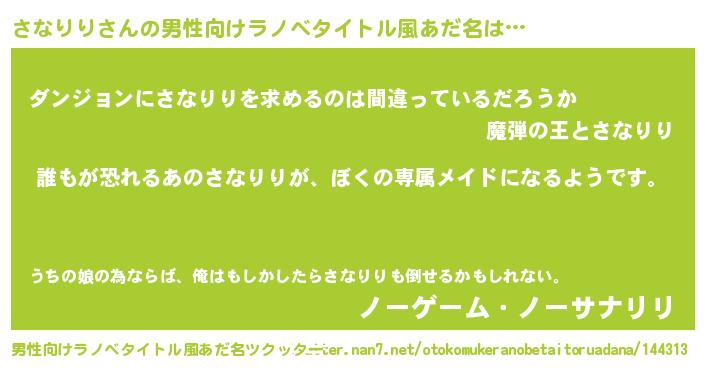 | 女子向けラノベタイトル風あだ名 | 『異世界でカフェさなりりを開店しました。』 |