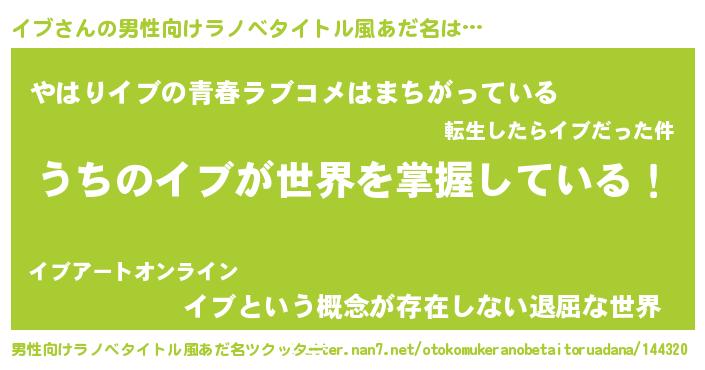 | 胡散臭い通販商品みたいなあだ名 | 『運命の人と巡り会える高級そうな絵画…その名も「イブ」』 |