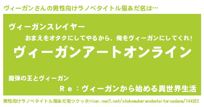 | 胡散臭い通販商品みたいなあだ名 | 『モテモテ間違いなし水晶球…その名も「ヴィーガン」』 |