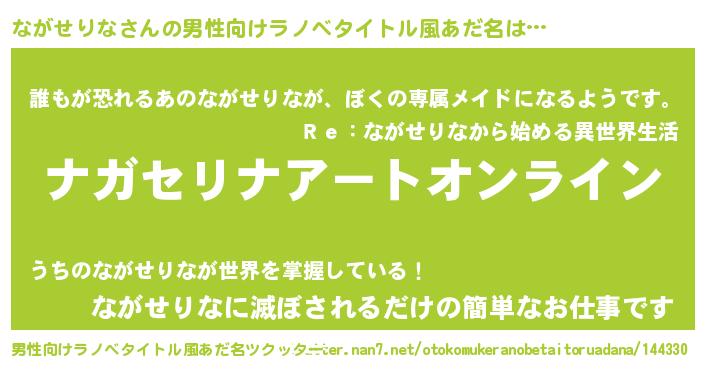 | 胡散臭い通販商品みたいなあだ名 | 『億万長者になれるブレスレット…その名も「ながせりな」』 |