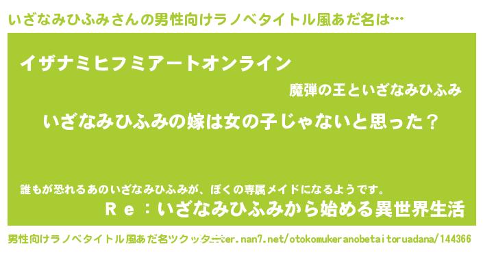 | 胡散臭い通販商品みたいなあだ名 | 『全米が絶賛したサプリメント…その名も「いざなみひふみ」』 |