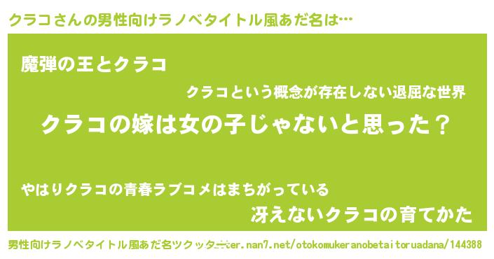 | 胡散臭い通販商品みたいなあだ名 | 『全米が絶賛したサプリメント…その名も「クラコ」』 |