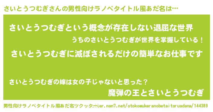 | 意味不明あだ名 | 『永久保存さいとうつむぎ』 |
