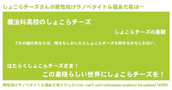 | ファンタジー風あだ名 | 『エターナルショコラチーズー』 |
