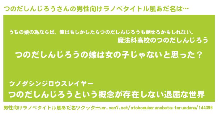 | 女子向けラノベタイトル風あだ名 | 『つのだしんじろうの卵を拾いまして』 |