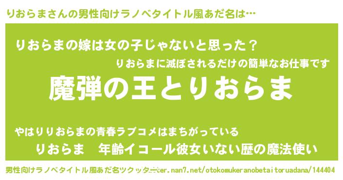 | 女子向けラノベタイトル風あだ名 | 『乙女ゲームの破滅フラグしかない悪役りおらまに転生してしまった…』 |