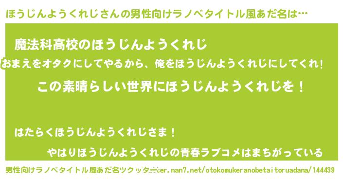 ほうじんようくれじさんの男性向けラノベタイトル風あだ名をツクッター!