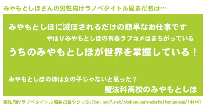 | ヒーロー風カッコイイあだ名 | 『最強戦士ミヤモトシホ』『暗黒騎士ミヤ』 |