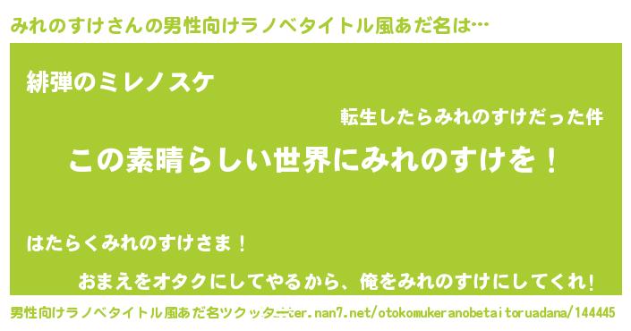 | 意味不明あだ名 | 『住所不定無職みれのすけ(8歳)』 |