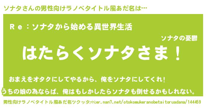 | ファンタジー風あだ名 | 『ゼソナトゥ』『エターナルソナター』 |