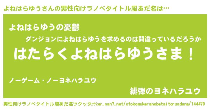| 胡散臭い通販商品みたいなあだ名 | 『必ず成功する水晶球…その名も「よねはらゆう」』 |