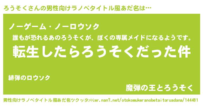 | 女子向けラノベタイトル風あだ名 | 『ろうそくの玉の輿計画!』 |