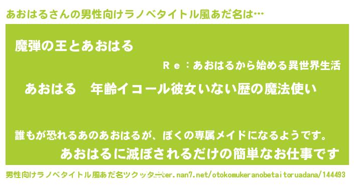 | 胡散臭い通販商品みたいなあだ名 | 『あなたにだけ特別に提供する100年もののヴィンテージワイン…その名も「あおはる」』 |