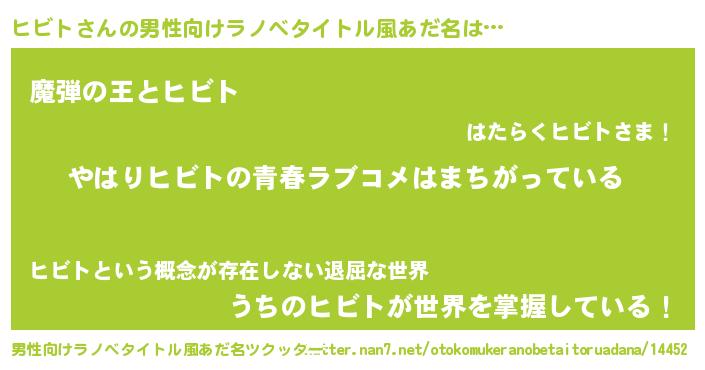 ヒビトさんの男性向けラノベタイトル風あだ名をツクッター!