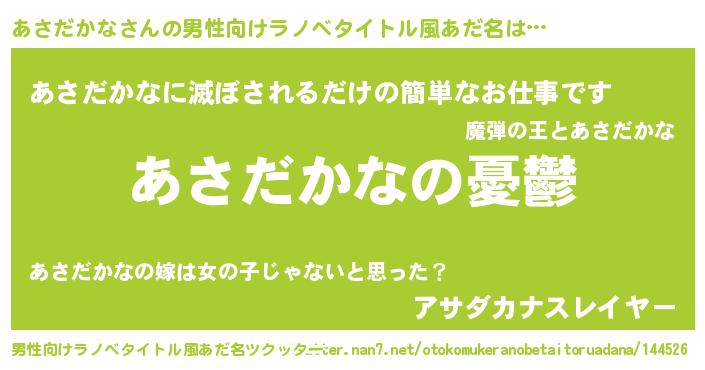 ヒーロー風カッコイイあだ名 | 『スーパーアサダカナ』『仮面アサダー』 |