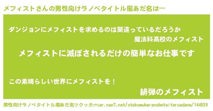 | 恥ずかしいあだ名 | 『メフリンリン』『メフィストデラックス』 |