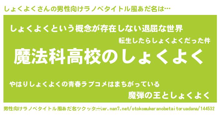 | 女子向けラノベタイトル風あだ名 | 『しょくよくアンティーク』 |