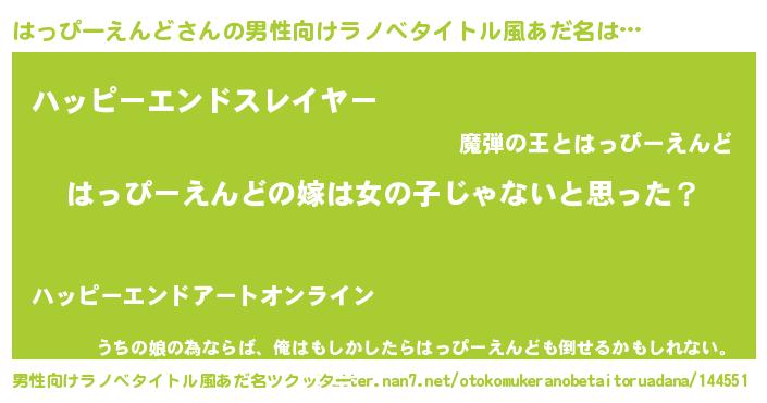 | 女子向けラノベタイトル風あだ名 | 『はっぴーえんどの卵を拾いまして』 |