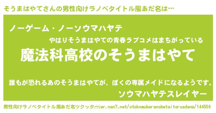 | 女子向けラノベタイトル風あだ名 | 『そうまはやてアンティーク』 |