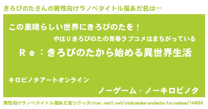 きろぴのたさんの男性向けラノベタイトル風あだ名をツクッター!