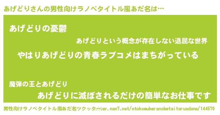 | 意味不明あだ名 | 『あげどりフォーエバー』 |