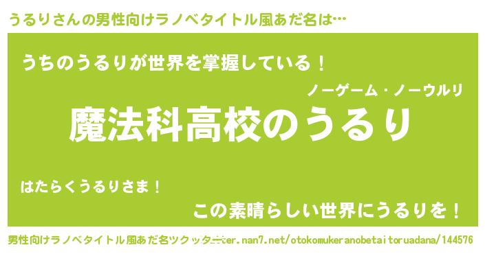 | 意味不明あだ名 | 『自称うるり』『住所不定無職うるり(91歳)』 |