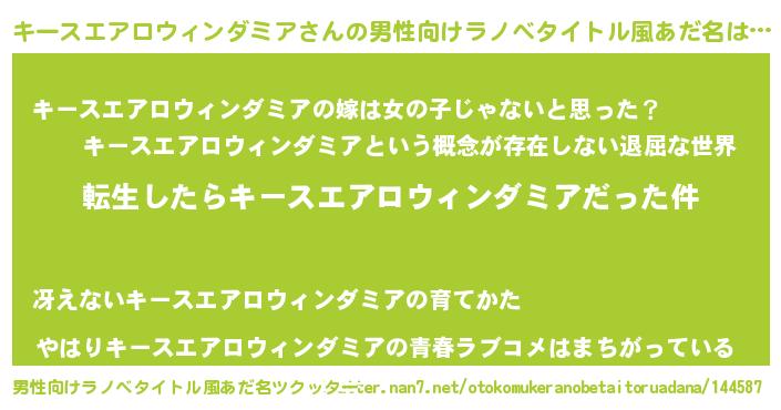 | 欧米人風あだ名 | 『トリンドルキースエアロウィンダミア』 |