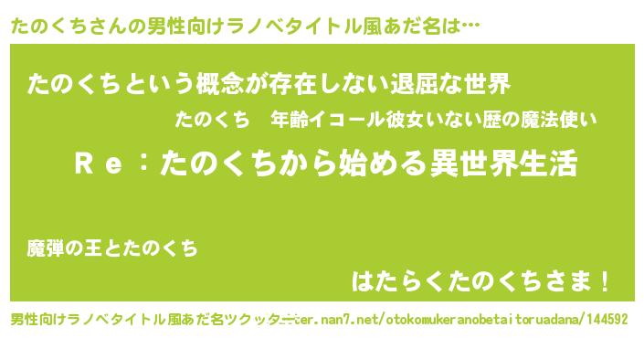 | 意味不明あだ名 | 『自称たのくち』『永久保存たのくち』 |