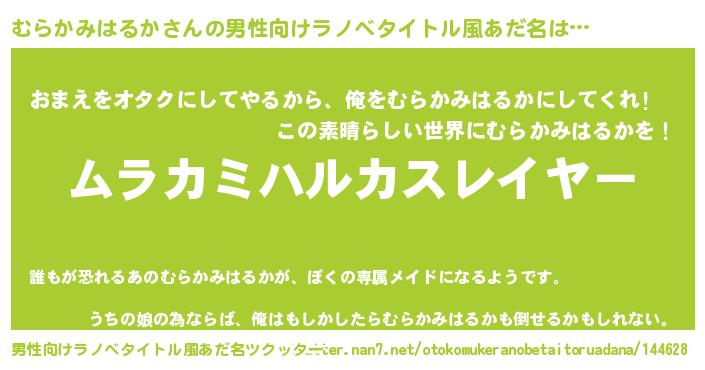 | 胡散臭い通販商品みたいなあだ名 | 『100人中100人が認めたマグネット磁石…その名も「むらかみはるか」』 |