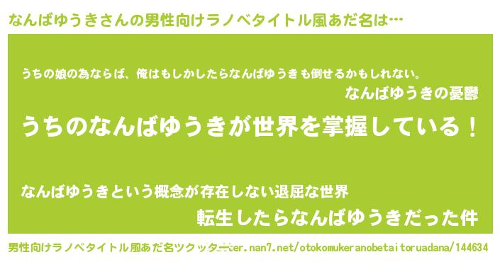 | 女子向けラノベタイトル風あだ名 | 『男装なんばゆうきの憂鬱な任務』 |
