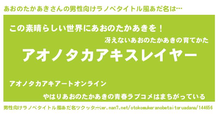 | 意味不明あだ名 | 『めかぶ科あおのたかあき属』 |