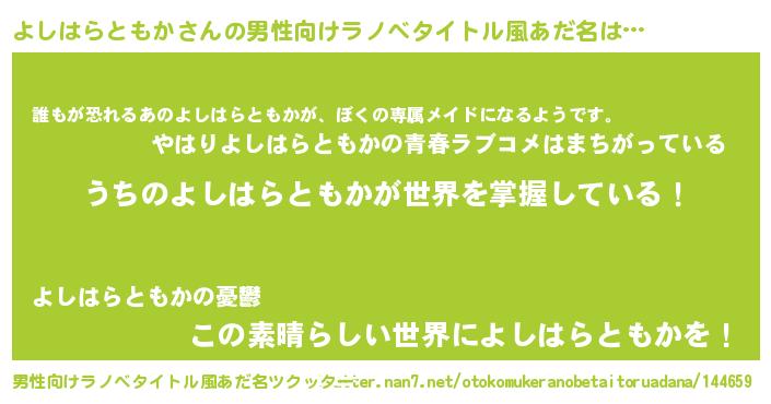 | ヘコむあだ名 | 『よしはらともか(爆)』『なまこ酢』 |