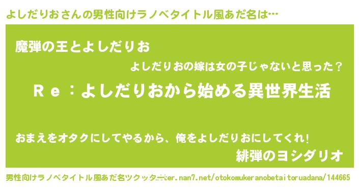 | 意味不明あだ名 | 『自称よしだりお』 |