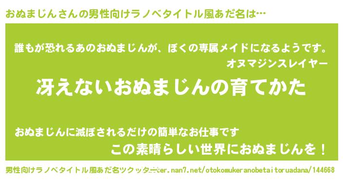 | 女子向けラノベタイトル風あだ名 | 『男装おぬまじんの憂鬱な任務』 |