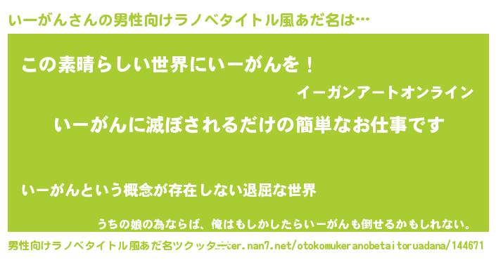 | 胡散臭い通販商品みたいなあだ名 | 『世界中を虜にした100年もののヴィンテージワイン…その名も「いーがん」』 |