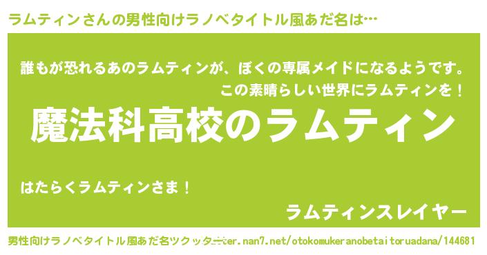 | ヒーロー風カッコイイあだ名 | 『ウルトラ戦士ラムティン』 |