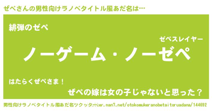 | 女子向けラノベタイトル風あだ名 | 『ぜペ恋絵巻』『ぜペの卵を拾いまして』 |