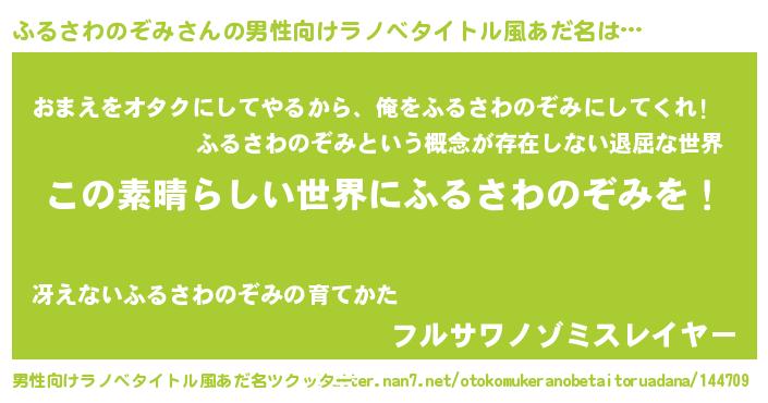 | 意味不明あだ名 | 『住所不定無職ふるさわのぞみ(10歳)』 |