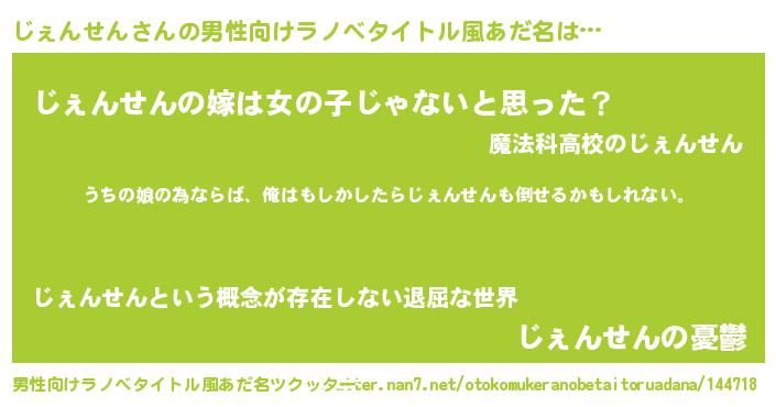 | 女子向けラノベタイトル風あだ名 | 『じぇんせんの婚約者』 |