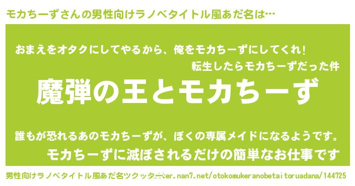 | 女子向けラノベタイトル風あだ名 | 『乙女ゲームの破滅フラグしかない悪役モカちーずに転生してしまった…』 |