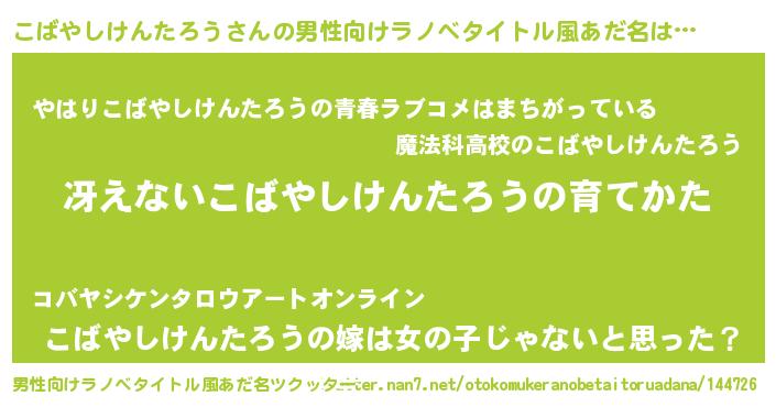 | 小説 | 最初の1行『こばやしけんたろう「最初はそんなこと、誰も信じていなかった。」』 |