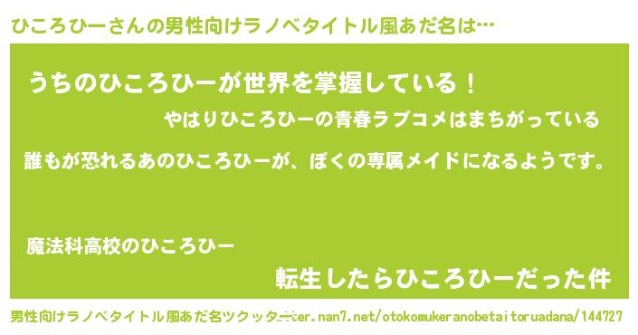| 意味不明あだ名 | 『永久保存ひころひー』『自称ひころひー』 |