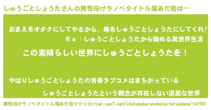 | 欧米人風あだ名 | 『ダレノガレしゅうごとしょうた』 |