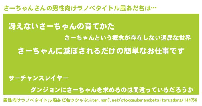 | ヘコむあだ名 | 『さーっぺ』『さーちゃん(笑)』 |